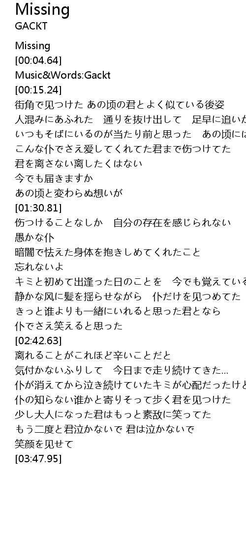 | [00:09.60] | Music Words: Gackt |