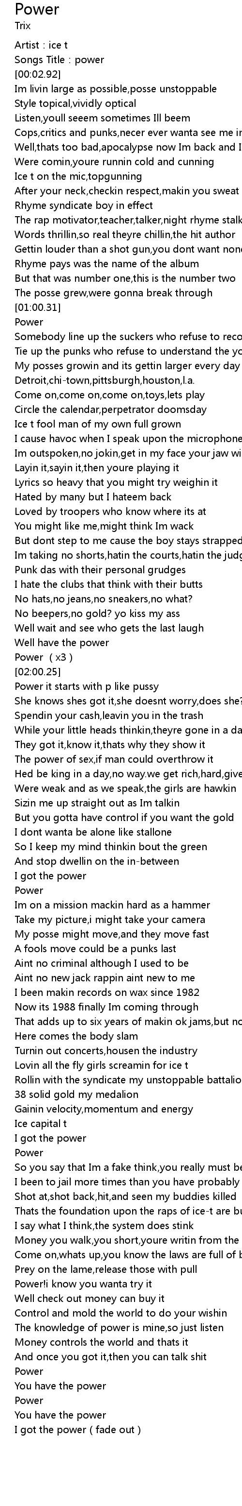 | [00:00.94] | Artist: ice t |