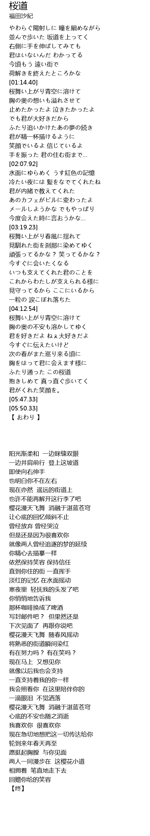 | [05:25.80] | ふたり通った この桜道 |