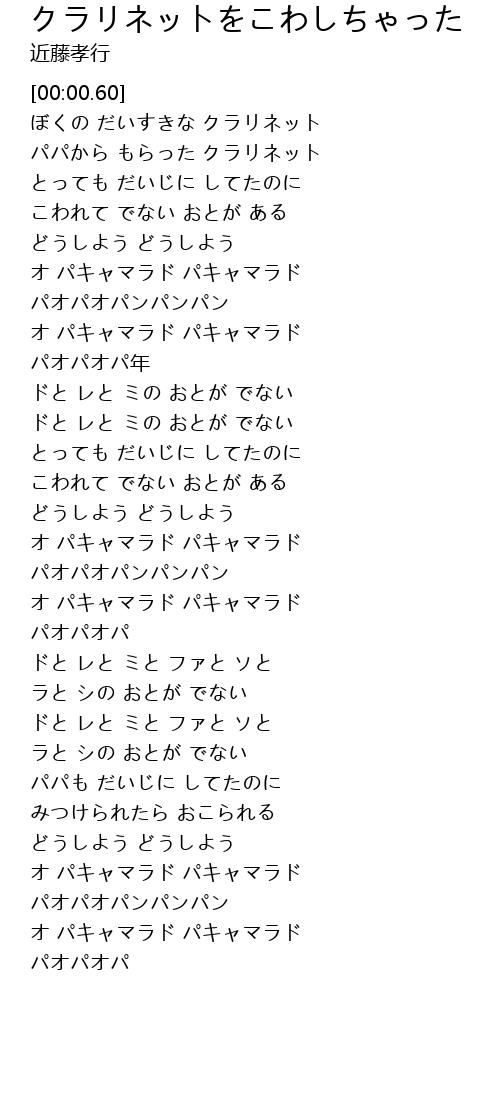 | [00:15.48] | ぼくの だいすきな クラリネット |