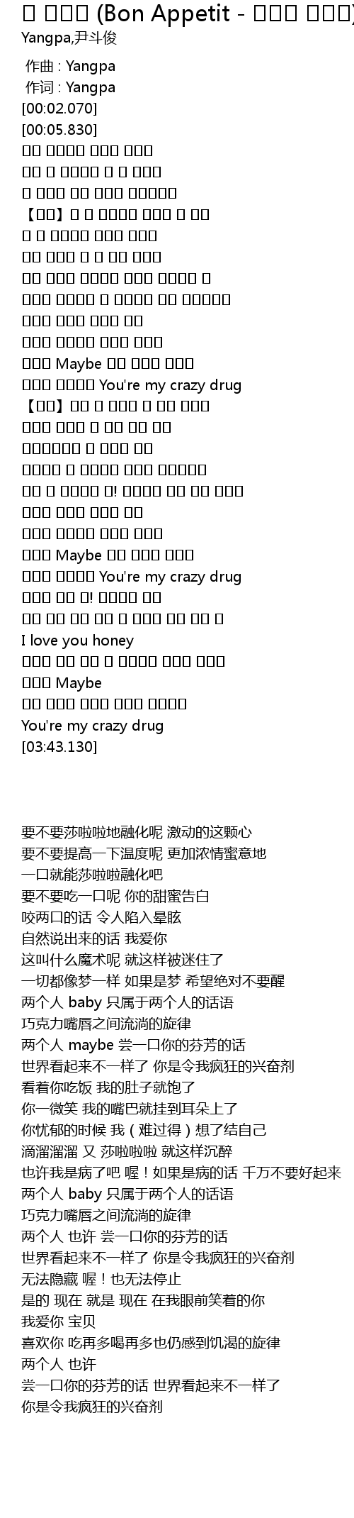 | [00:00.690] | 作词 : Yangpa |