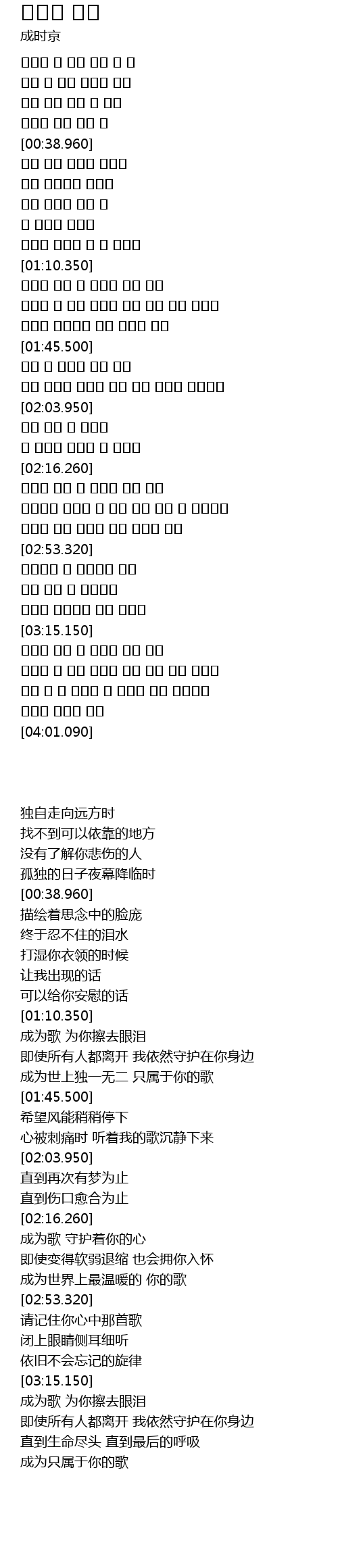 | [03:15.890] | 成为歌 为你擦去眼泪 |