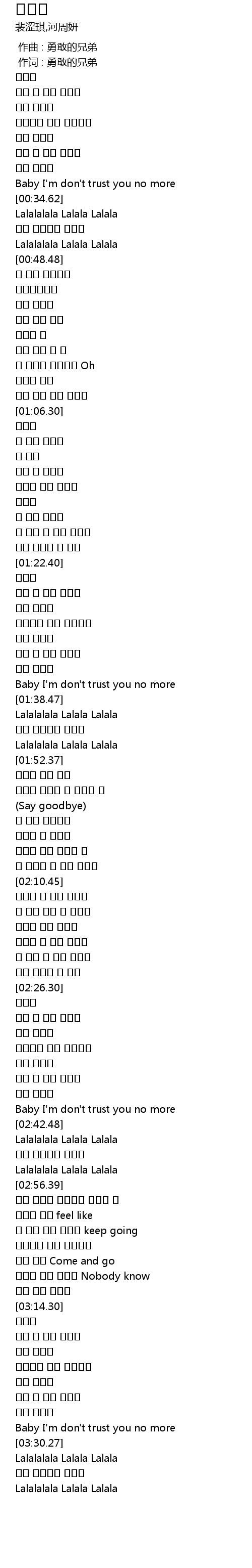 | [02:39.33] | Baby I' m don' t trust you no more |