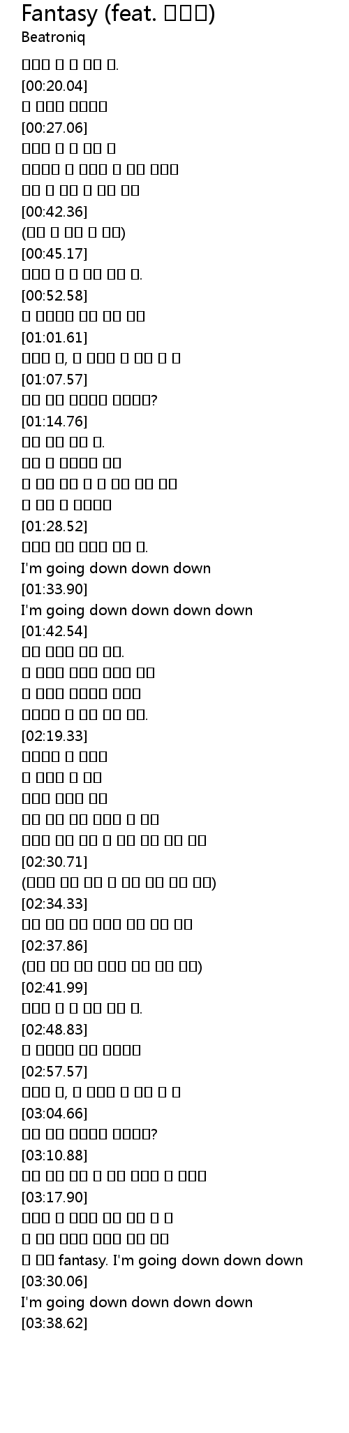 | [03:26.54] | 그 꿈은 fantasy. I'm going down down down |