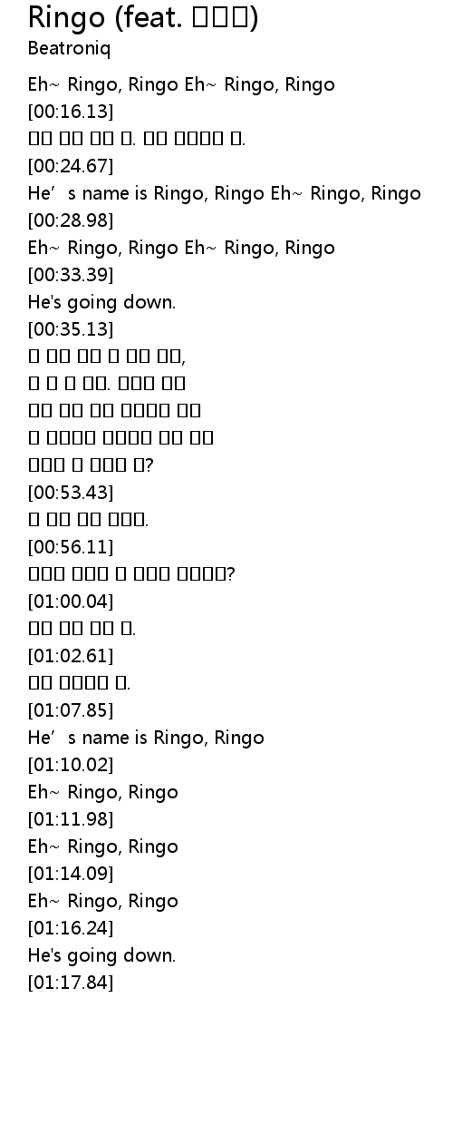 | [01:12.81] | Eh~ Ringo, Ringo |