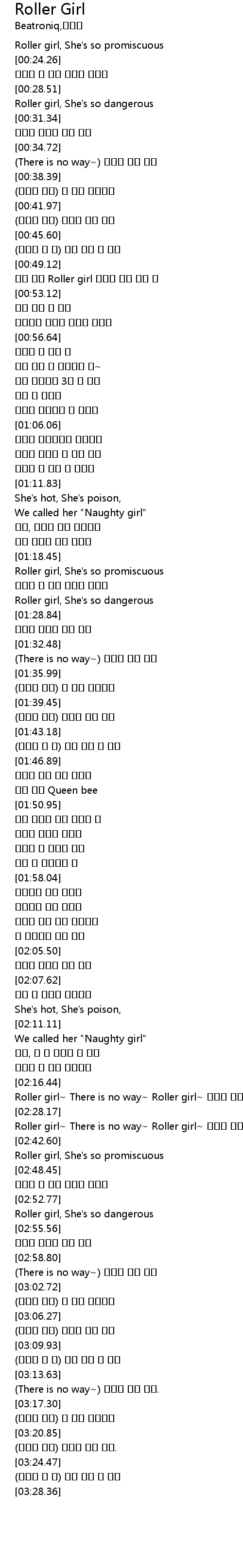 | [02:35.10] | Roller girl~ There is no way~ Roller girl~ 그녀의 노예 |
