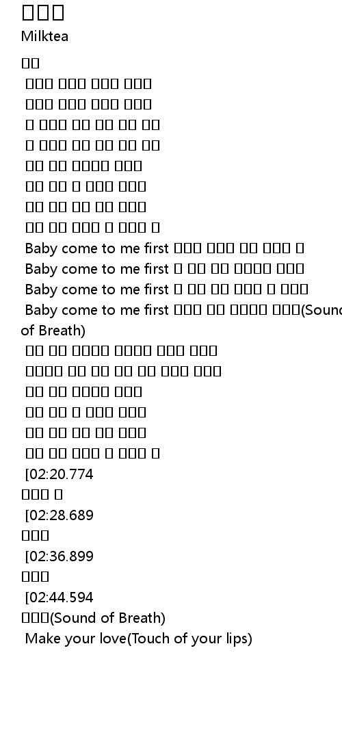 | [03:31.467] [02:44.594] | Baby come to me first 깊숙한 너의 숨소리도 들려와(Sound of Breath) |