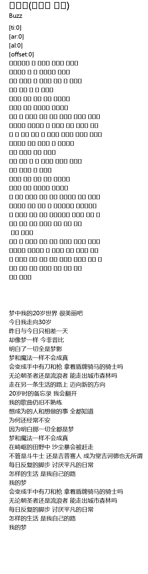 | [00:23.20] | 아름답다고 난 스물의 세상을 꿈꿨지 |