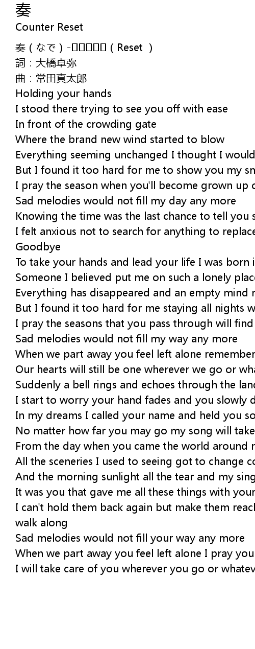 | [00:00.00] | 奏(なで)-카운터리셋(Reset ) |
