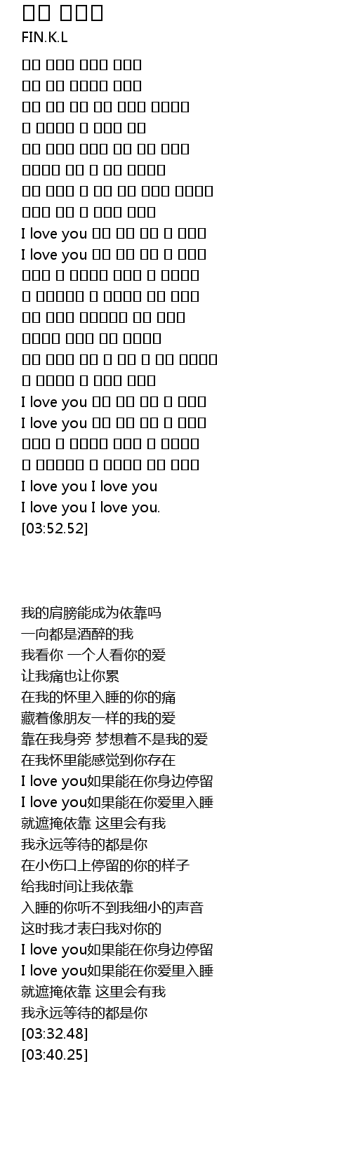 | [03:06.10] | I love you 너의 사랑 잠들 수 있다면 |