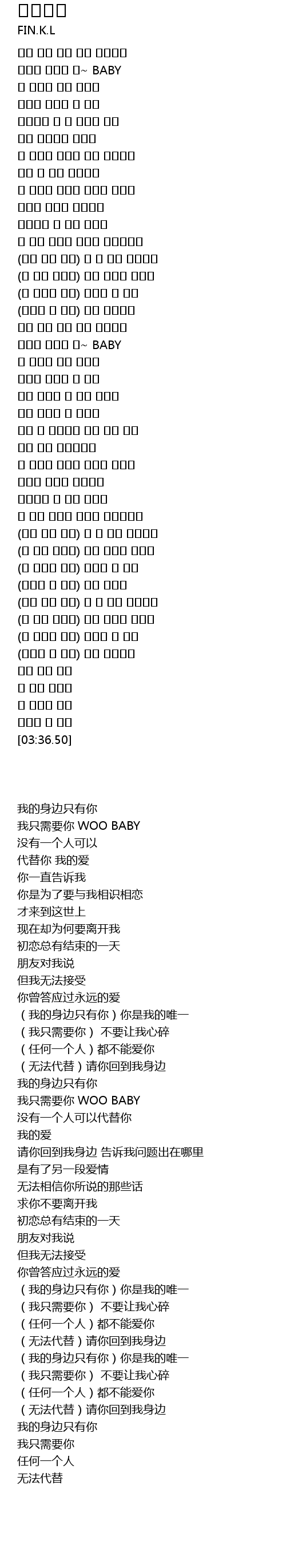 | [00:23.00] | 我只需要你 WOO BABY |