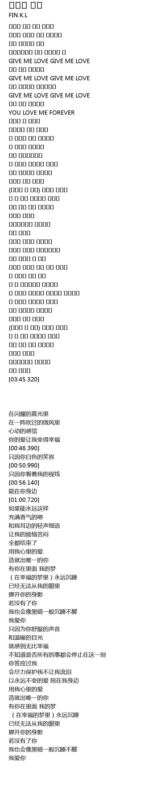 | [03:18.890] | (행복한 꿈 속에) 영원히 잠들지 |