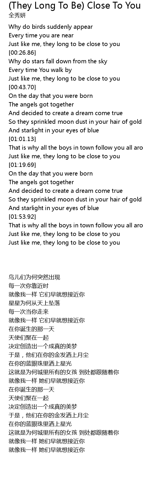 Just like me, they long to be close to you |