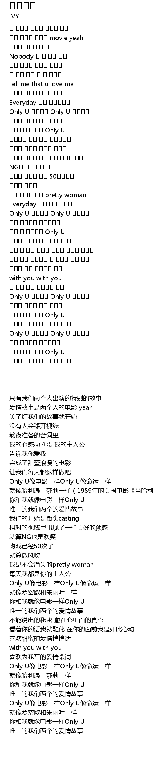 | [03:35.88] | Only U 영화처럼 Only U 운명처럼 |