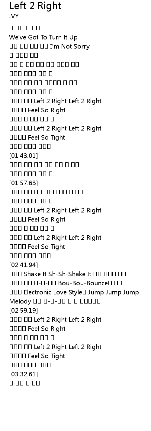 | [03:00.19] | Left 2 Right Left 2 Right |