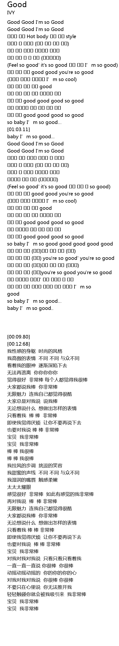 | [00:12.68] | Good Good I' m so Good |
