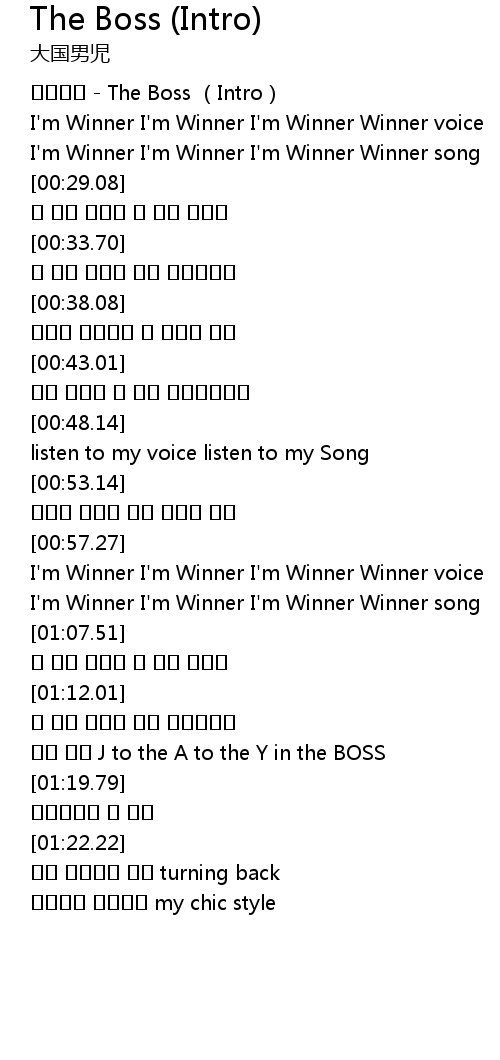 | [00:01.75] | 대국남아 - The Boss (Intro) |