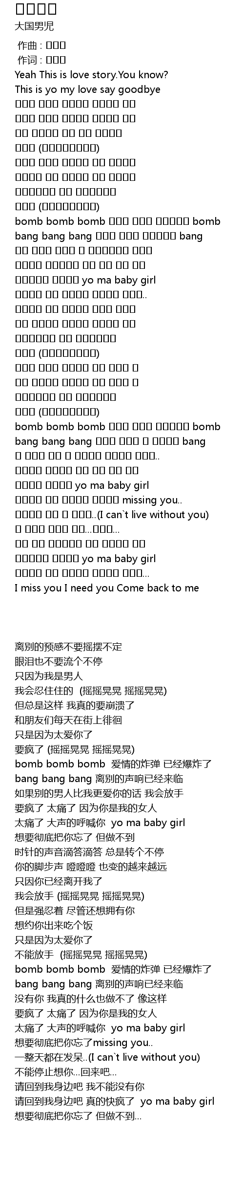 | [02:13.860] | bomb bomb bomb 가슴이 이렇게 터져버렸어 bomb |