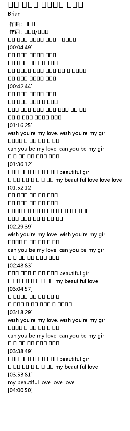 | [03:39.23] | 사랑해 사랑해 내 맘을 받아줘 beautiful girl |