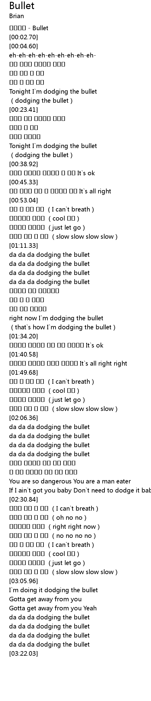 | [00:34.12] | Tonight I`m dodging the bullet |