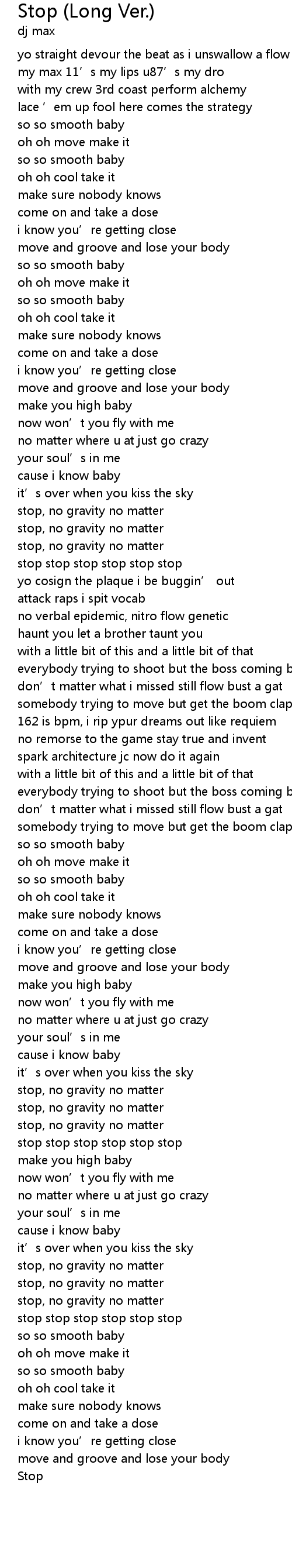 | [02:19.85] | stop stop stop stop stop stop |