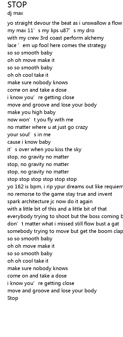 | [00:38.55] | stop, no gravity no matter |