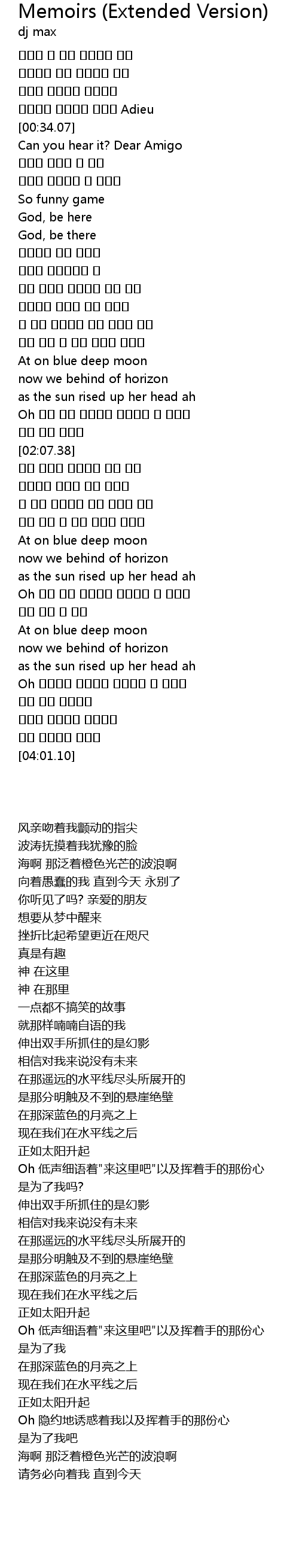 | 歌曲 | Memoirs (Extended Version) |