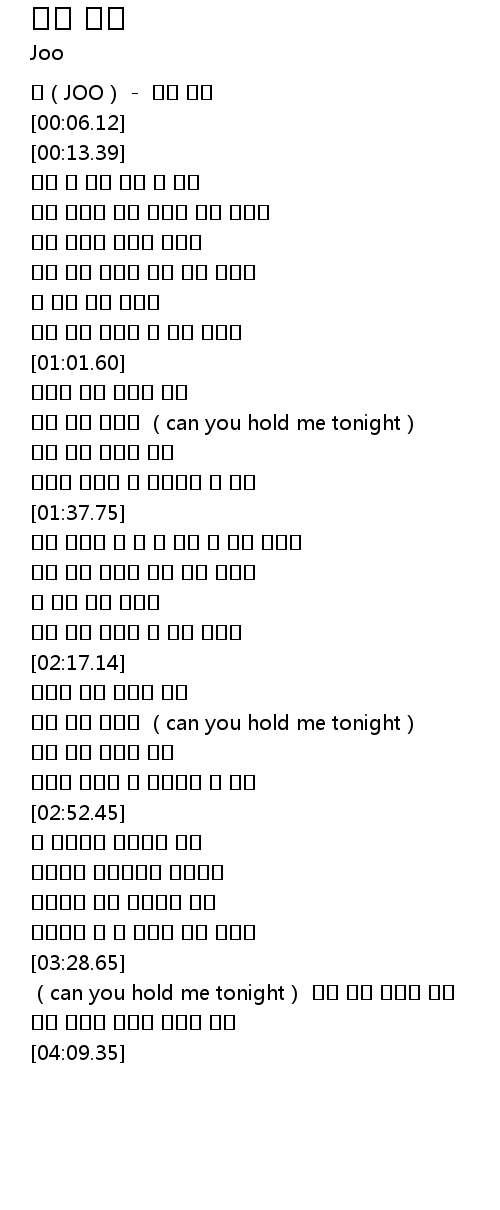 | [01:12.54] | 눈을 감지 못해요 (can you hold me tonight) |