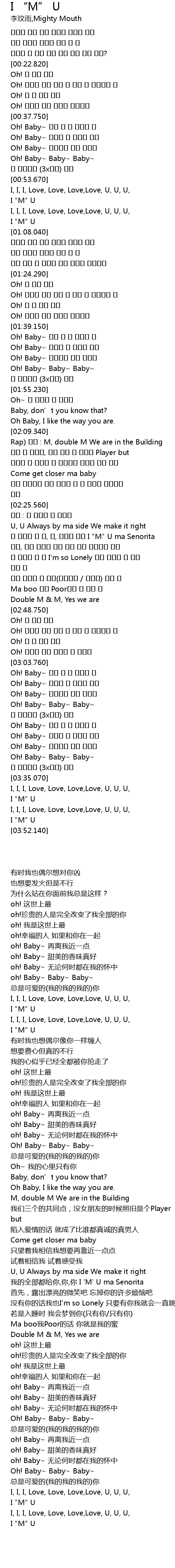| [00:53.840] | I, I, I, Love, Love, Love, Love, U, U, U, |