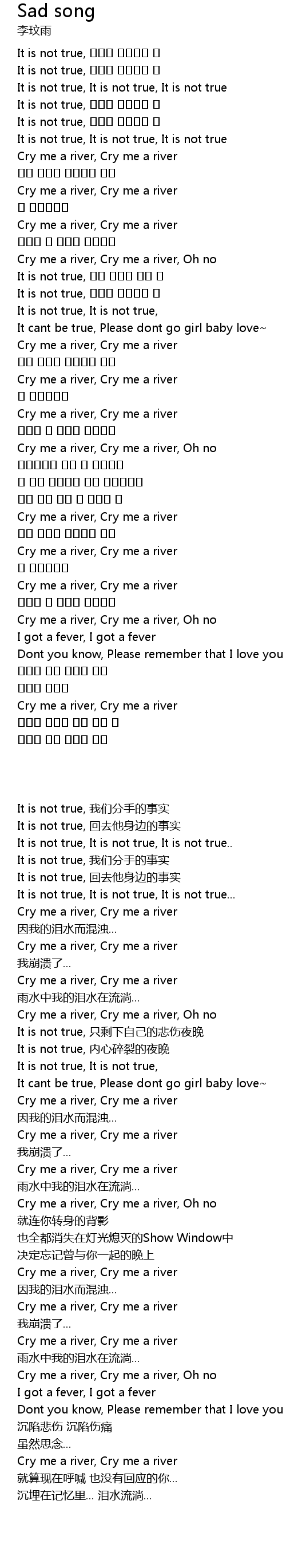 | [03:17.390] | Cry me a river, Cry me a river |