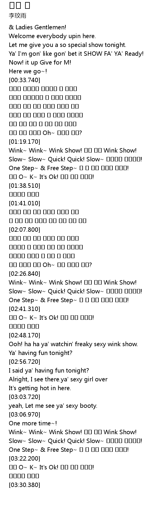| [02:27.700] | Wink~ Wink~ Wink Show! 그댈 향한 Wink Show! |