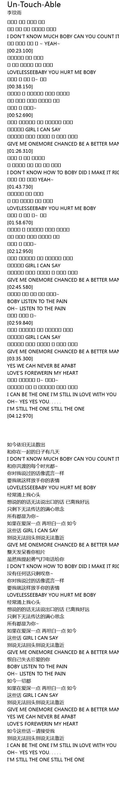 | [03:50.350] | 돌이킬수도 없다 고 다가설수도 없다고 하지마 |