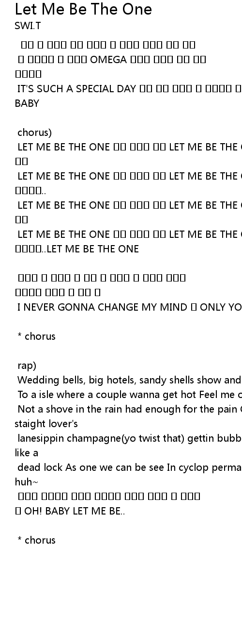 | LET ME BE THE ONE 나와 행복에 잠길 LET ME BE THE ONE 내 사랑이 되어주오..LET ME BE THE ONE | |
