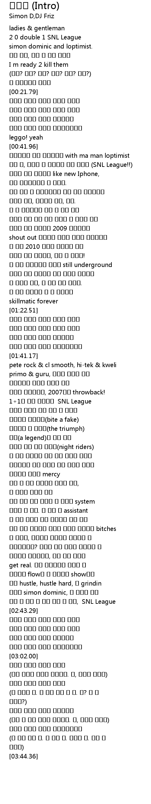 | [00:44.78] | 몇년 전, 랩으로 툭 던져놨던 나의 말땜에 (SNL League!!) |