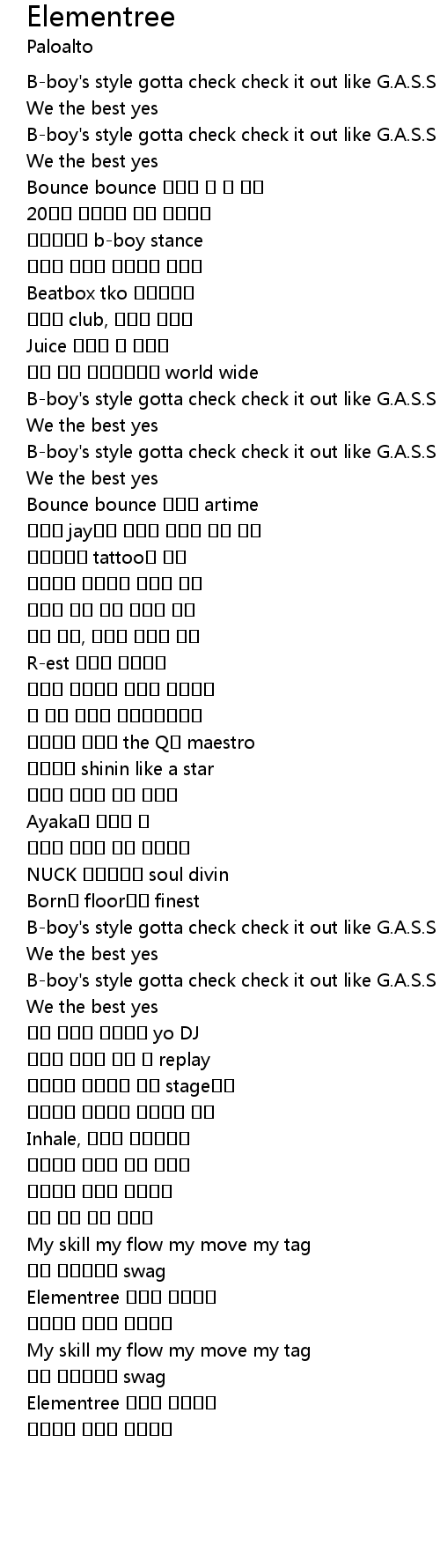 | [00:14.89] | B-boy's style gotta check check it out like G.A.S.S |