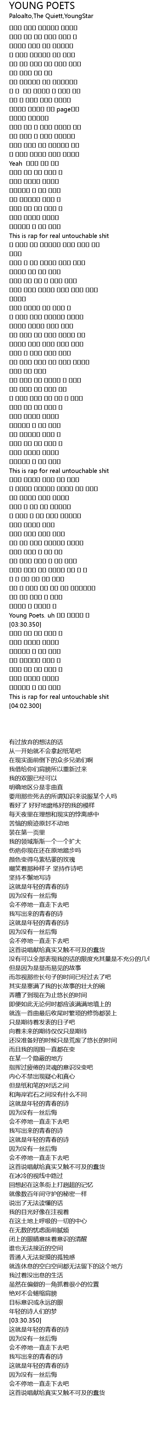 | [03:24.060] | Young Poets. uh |