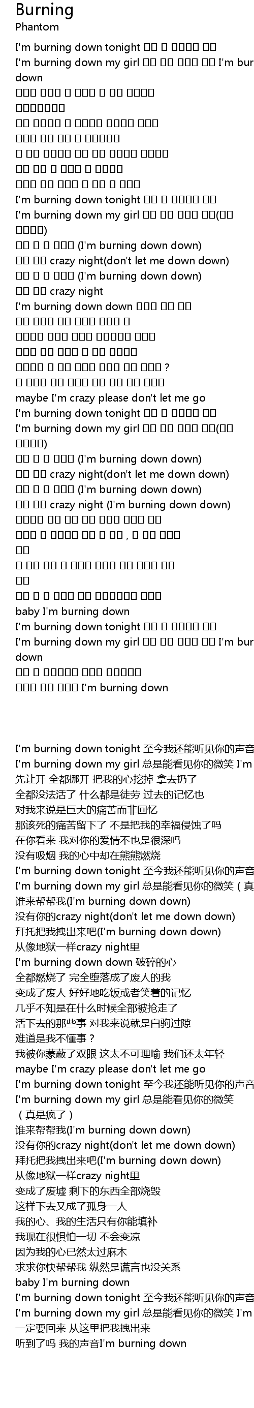 | [00:16.44] | I' m burning down my girl I' m burning down |