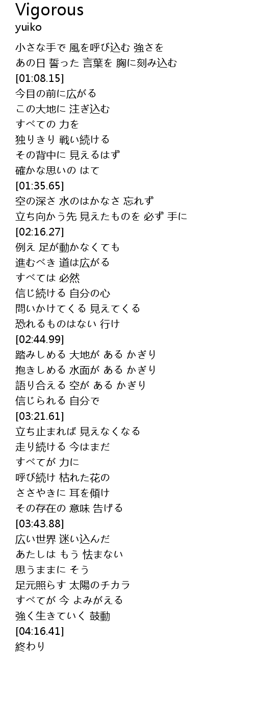 | [04:00.13] | 強く生きていく 鼓動 |