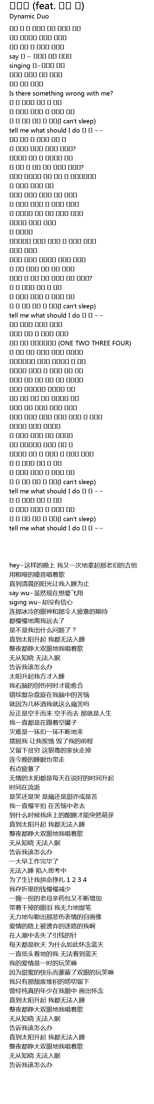 | [01:19.35] | 알 수 없어 잠들 수 없어(I can't sleep) |