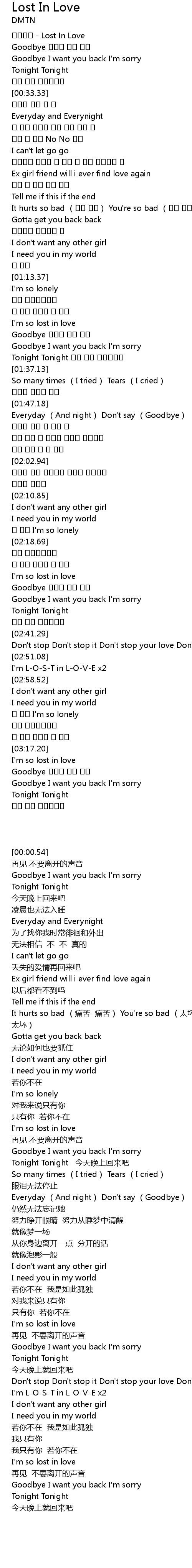 | [02:54.19] | I'm L-O-S-T in L-O-V-E x2 |