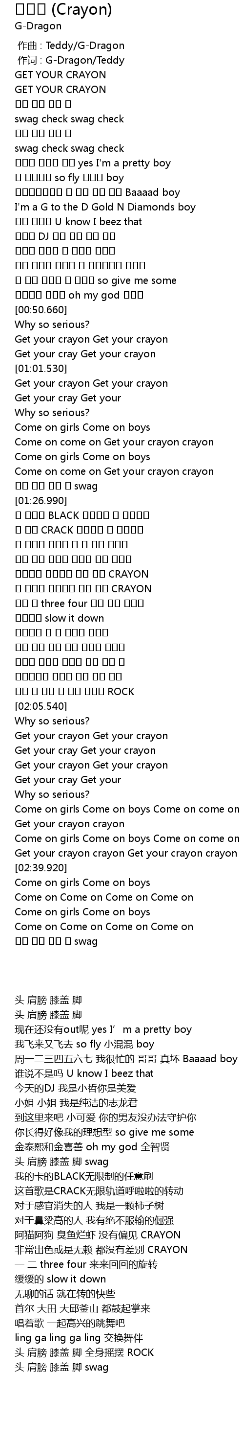 | [00:00.330] | 作词 : G-Dragon/Teddy |