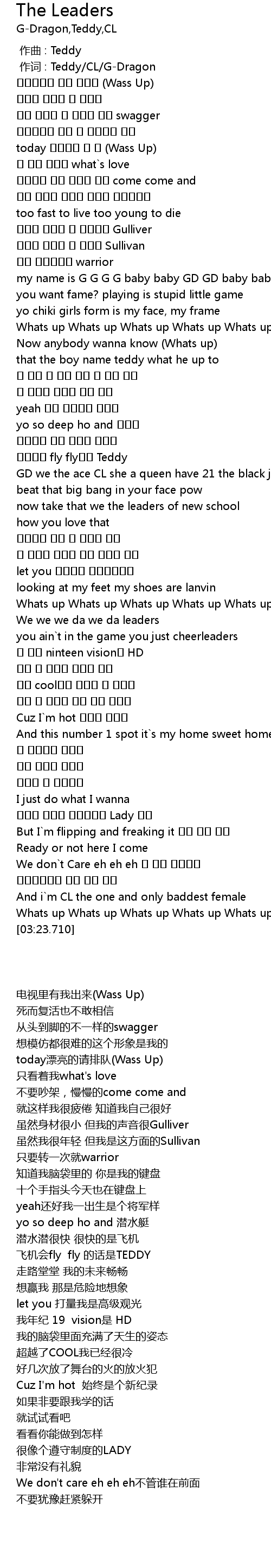 | [00:01.00] | 作词 : Teddy/CL/G-Dragon |