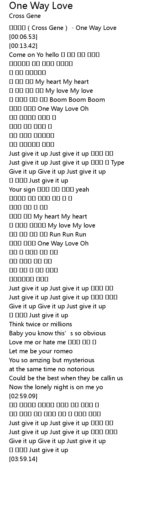 | [00:00.51] | 크로스진(Cross Gene) - One Way Love |