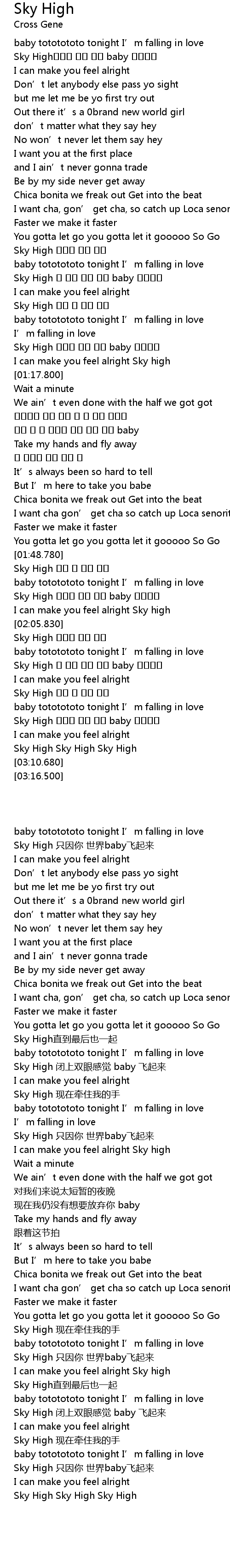 | [01:57.800] | Sky High 只因你 世界baby飞起来 |