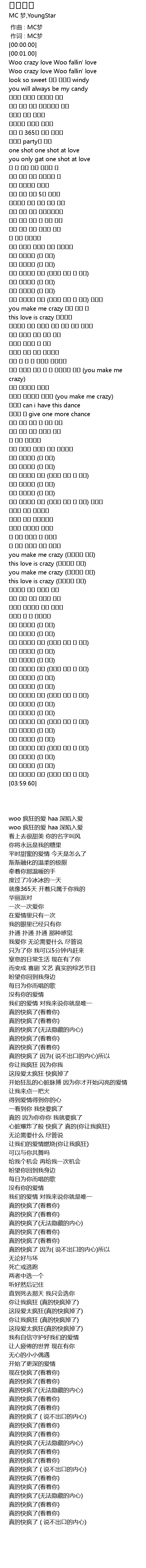| [00:09.18] | woo 疯狂的爱 haa 深陷入爱 |