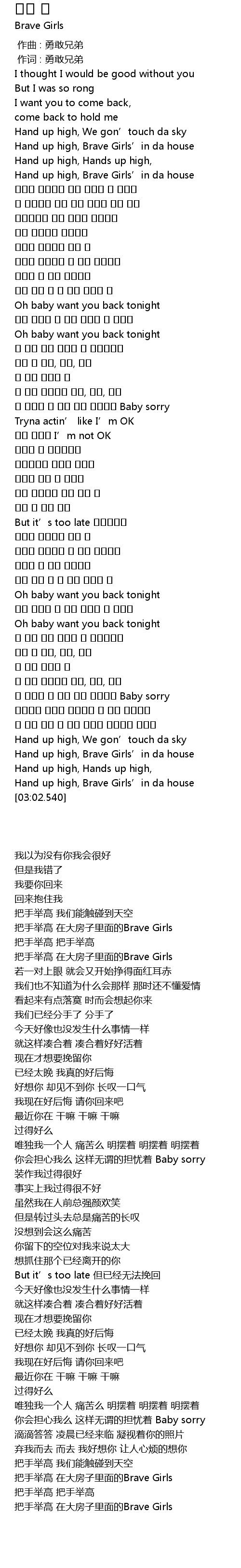 | [02:51.290] | Hand up high, Brave Girls' in da house |
