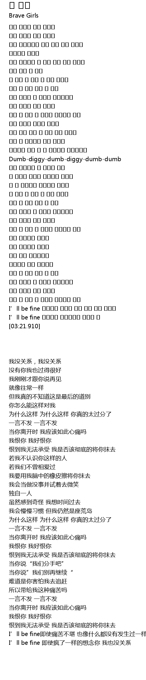 | [03:11.14] | I’ll be fine即使痛苦不堪 也像什么都没有发生过一样 |