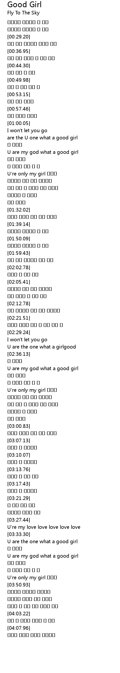 | [03:36.18] | U are the one what a good girl |