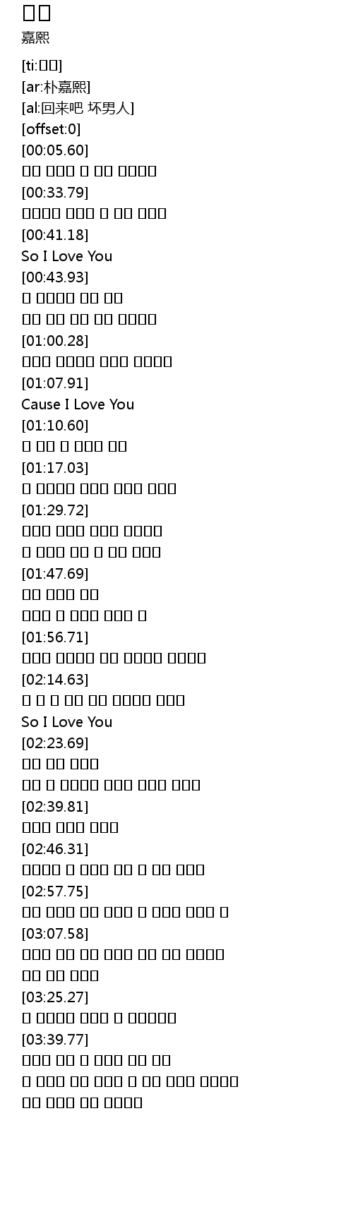 | [02:58.56] | 다른 사람은 없어 나에겐 너 하나만 있으면 돼 |