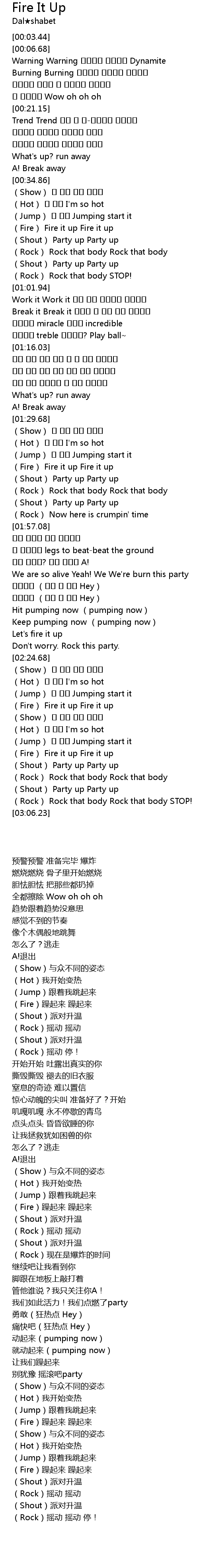 | [00:45.28] | (Fire) Fire it up Fire it up |
